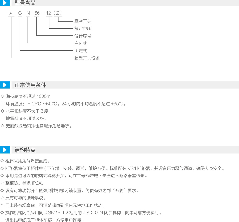XGN66-12系列10kV固定式開關(guān)柜配用了高開斷能力和低截流值的VS1真空斷路器或VD4等合資、外資品牌真空斷路器,滿足“五防”聯(lián)鎖功能,是一種性能優(yōu)越的配電裝置。用于各種居住小區(qū)、發(fā)電廠、中小型發(fā)電機(jī)送電、工礦企事業(yè)單位配電以及電業(yè)系統(tǒng)二次變電所的受電、配送電及大型高壓電動機(jī)啟動等。