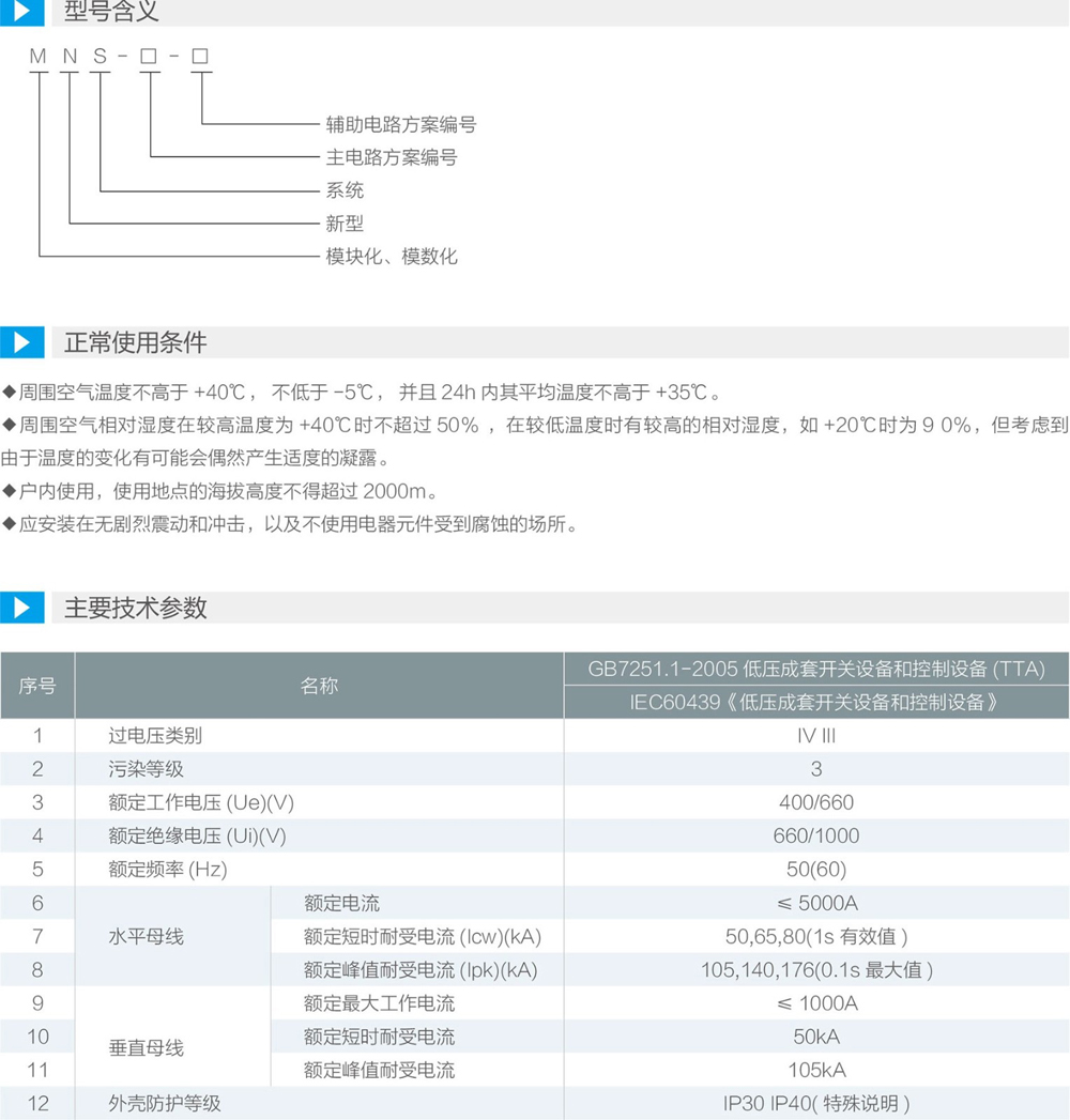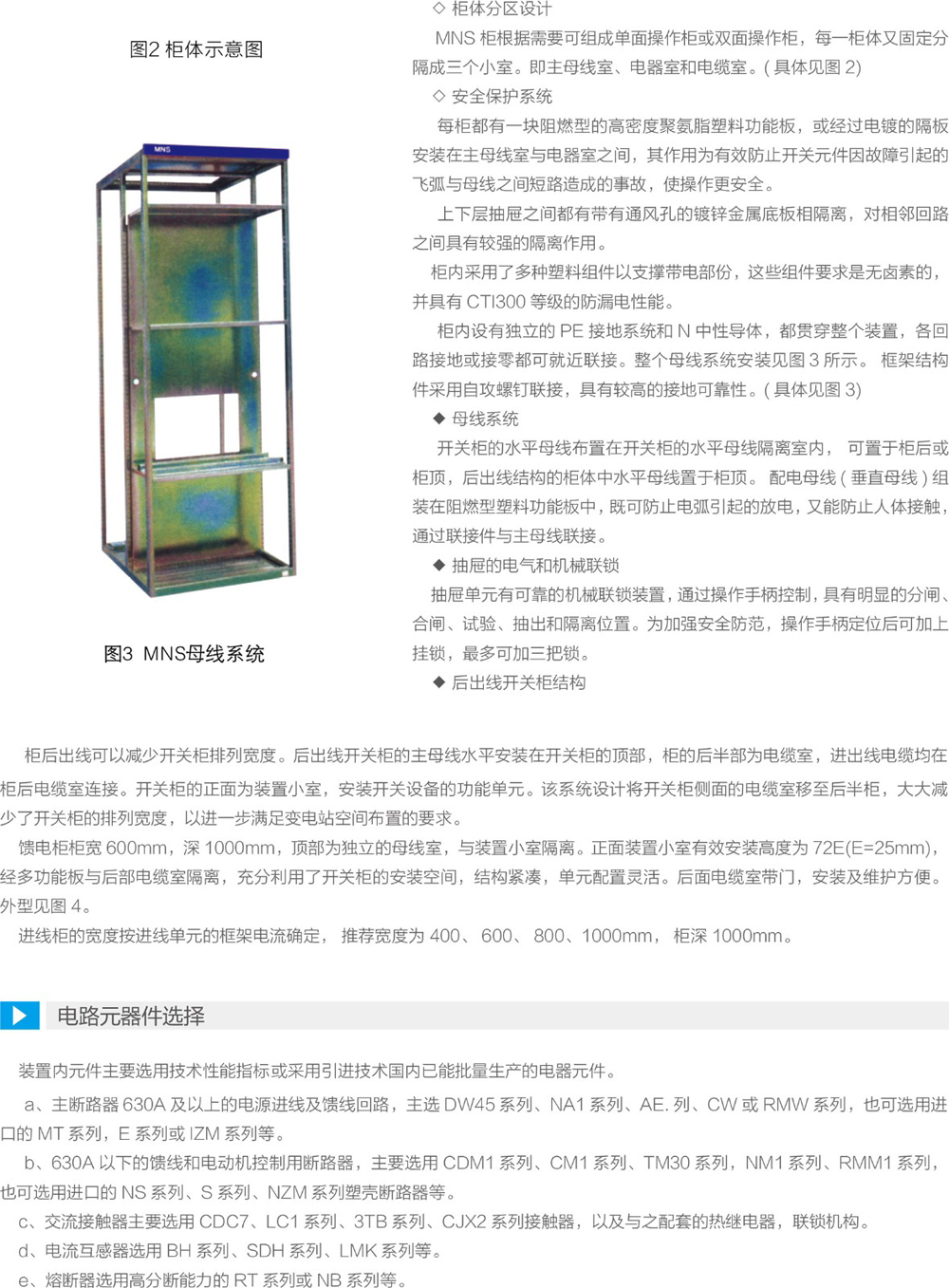 MNS型低壓抽出式開關(guān)柜(以下稱開關(guān)柜)是我公司參考了優(yōu)良公司的MNS系列低壓開關(guān)柜并加以綜合改進后開發(fā)的低壓抽出式開關(guān)設(shè)備。該產(chǎn)品由標(biāo)準(zhǔn)化的、成系列的模塊組成,并且抽屜具有可靠的機械聯(lián)鎖裝置,使用戶在使用時更安全、更可靠。