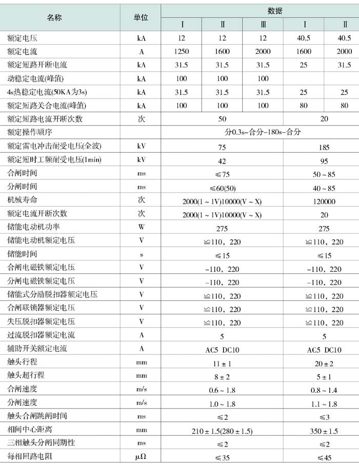 常用型號(hào)如下:ZN12-40.5/1600-25、ZN12-40.5/2000-31.5、ZN12-40.5/1250-25