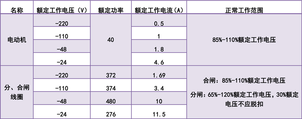 電機(jī) 、 分合閘線圈技術(shù)參數(shù)