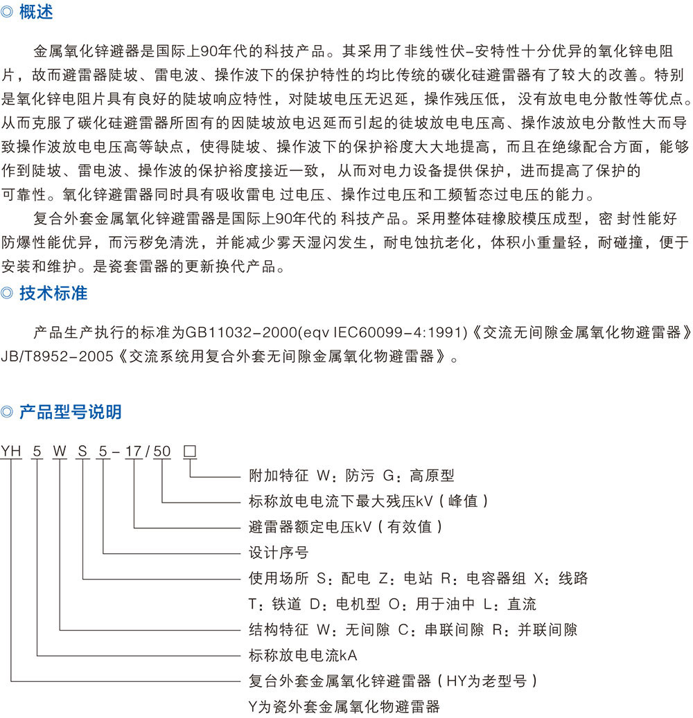 氧化鋅避雷器系列
